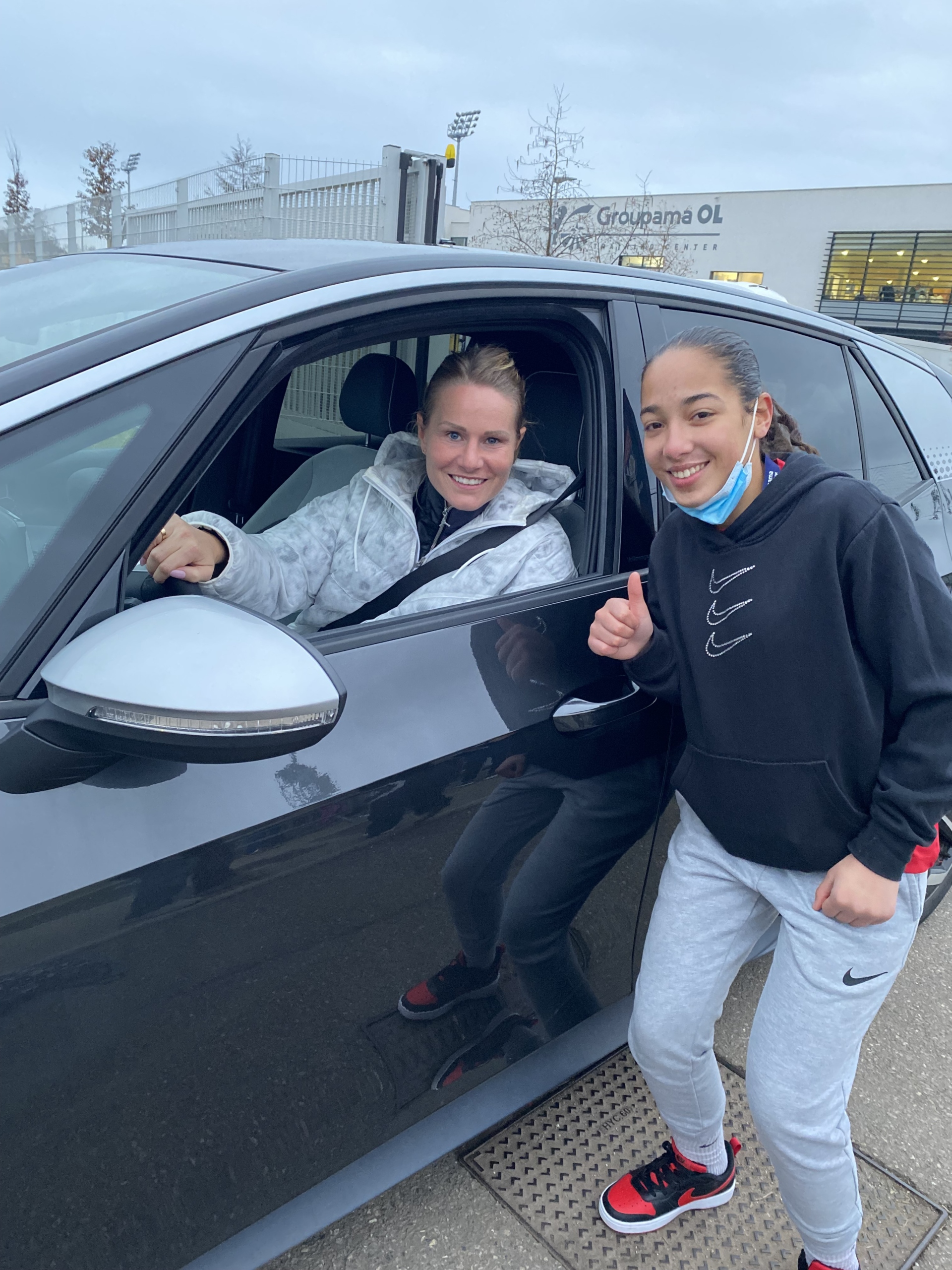 Après avoir goûté au Groupama Stadium le premier jour, ils ont visité le centre de formation de l’Olympique Lyonnais le deuxième jour. C’est la qu’ils ont rencontré de nombreux joueurs et joueuses. Dzsenifer Marozsán, Janice Cayman, Eugénie Le Sommer, Ellie Carpenter – qui remettra son maillot un jour plus tard lors du match – ont pris le temps d’une courte conversation et de quelques photos, entre autres. Aussi les joueurs Houssem Aouar – qui a commencé à offrir ses vêtements d’entraînement en cadeau – et Tino Kadewere, qui ont pris du temps pour les filles.